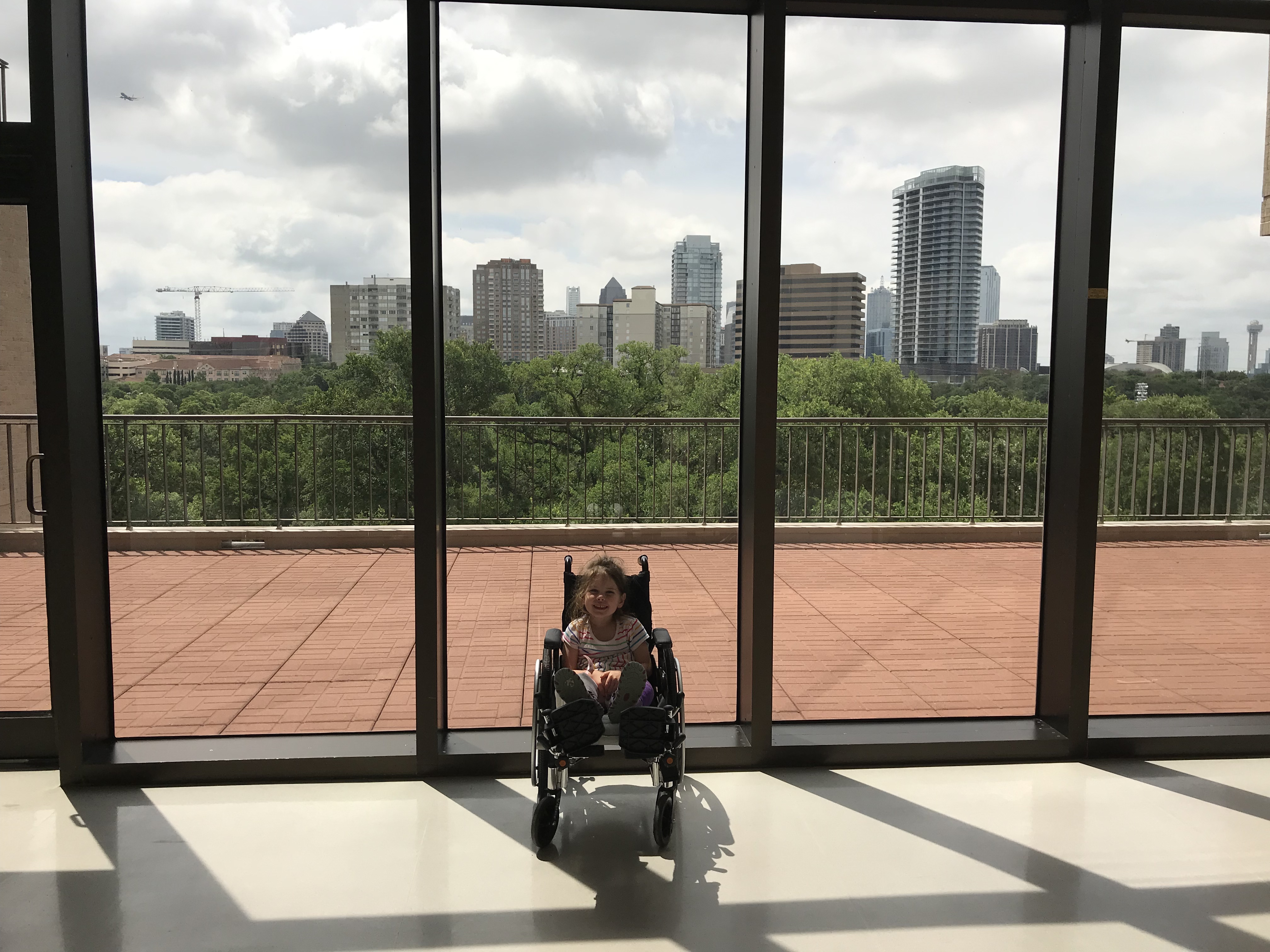 Ignoring in these scenarios has worked for most of the last five years. We have tried to stay so focused on our enjoyment of each other that we either don’t notice the staring – or can distract ourselves from it. Despite its success for us, however, it has become less effective. While in Scottish Rite Hospital for treatment, we took Helena to the Perot Museum in Dallas. We went at 4:00 p.m. the first day and it closes at 5 p.m., so we we had to make another visit the next day to see the rest of the museum. On the first day, while we were in the elevator with another family, I noticed Helena covering up her hinged knee.